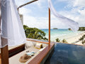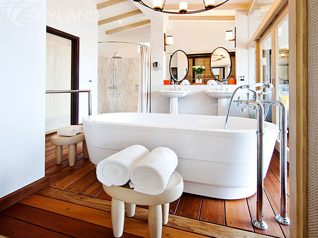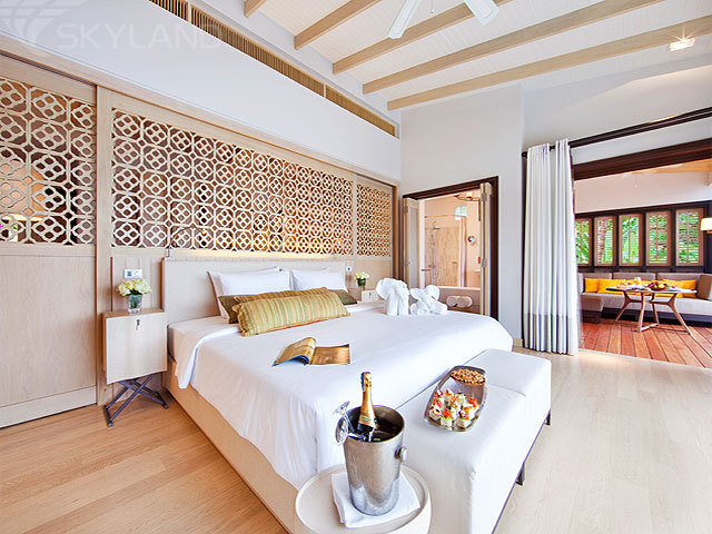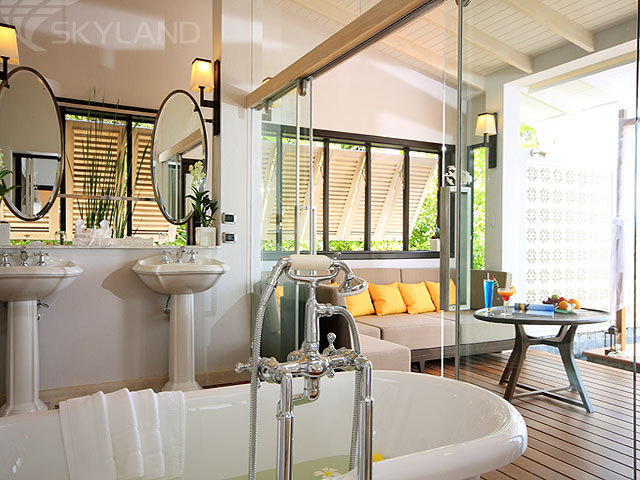 48 шикарных вилл открытого плана с частными бассейнами и просторными террасами, где гости могут позагорать и отдохнуть, разместились среди пышной тропической зелени, на склонах живописного холма, спускающегося к уединенной бухте, пустынному белоснежному пляжу и изумрудным водам Андамнского моря. Все виллы располагают роскошными спальнями, просторными ванными комнатами открытого плана с глубокой ванной, душем с функцией «тропический душ» и туалетом, а также отдельными прекрасно оборудованными гостиными. Погрузитесь в прохладу большого расположенного в нескольких шагах от пляжа «бескрайнего» бассейна, насладитесь экзотическими процедурами в превосходном спа-центре, разомните мышцы в современном фитнес-центре, насладитесь изысканными блюдами в ресторане на пляже, расслабьтесь в уютном баре и оцените потрясаюший букет ароматов вин из богатой коллекции местного винного погреба.