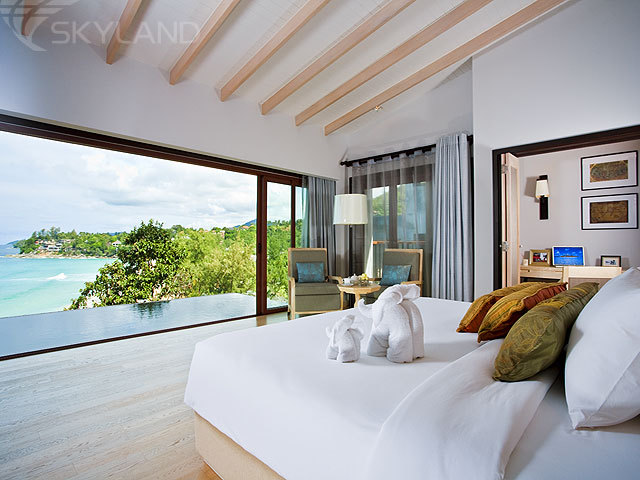 35 Seaview Pool Villas (130 кв.м) - частные виллы, состоящие из спальни с кроватью king-size, отдельной гостиной с обеденной зоной, гардеробной, ванной комнаты с ванной и отдельным «тропическим» душем, просторной открытой террасы с персональным бассейном, зоной отдыха и панорамным видом на море. Максимальное размещение – 2 взрослых.