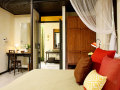 44 Deluxe Plunge Pool Rooms (общая площадь 94 кв.м) – однокомнатные номера, состоящие из просторной спальни с кроватью king-size, ванной комнаты открытого плана с ванной на двоих и душевой кабиной, окруженной тропическим садиком открытой террасы (16 кв.м) с гостиной зоной и выходом к частному бассейну (4х4 м). Возможно объединение некоторых номеров.