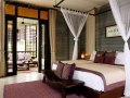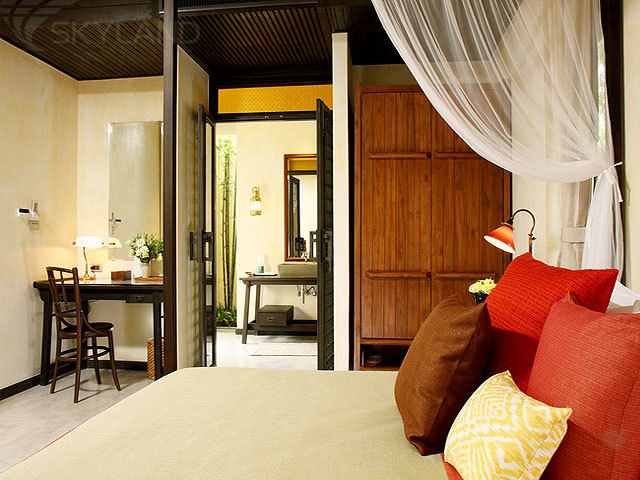 16 Deluxe Pool Access Rooms (98 кв.м) - роскошно оборудованные виллы с выходом к открытому бассейну (8х25 м), общему для гостей 4-7 вилл, состоящие из спальни с кроватью king-size, ванной комнаты открытого плана с гардеробной, ванной на двоих и «ливневым» душем на свежем воздухе, окруженной тропическим садиком обширной открытой террасы с солярием и павильоном Sala с гостиной зоной и выходом к бассейну.