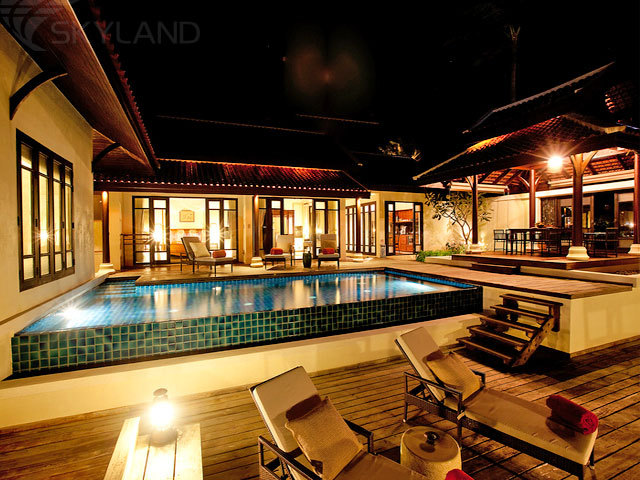 11 Anantara Pool Villas (160 кв.м) – роскошно оборудованные виллы с индивидуальным открытым бассейном (3х6 м), состоящие из спальни с кроватью king-size, отдельной гостиной, ванной комнаты открытого плана с душевой кабиной, «ливневым» душем на свежем воздухе, окруженной тропическим садиком обширной открытой террасы с солярием и павильоном Sala с гостиной зоной и огромной ванной на двоих на свежем воздухе.