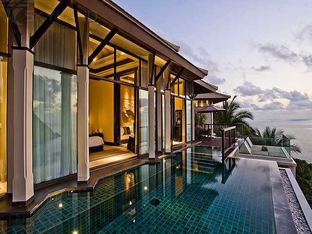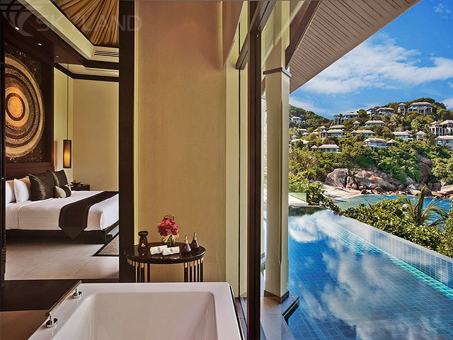 Ocean Pool Villas (130 кв.м) – расположенные в ухоженном тропическом саду виллы с панорамным видом на тропические сады и Сиамский залив, состоящие из просторной гостиной, спальни с кроватью king-size, ванной комнаты открытого плана с большой ванной, душевой кабиной и гардеробной, открытой террасы с зоной отдыха столиком для двоих, персональным бассейном и солярием с лежаками. Максимальное размещение – 2 взрослых.