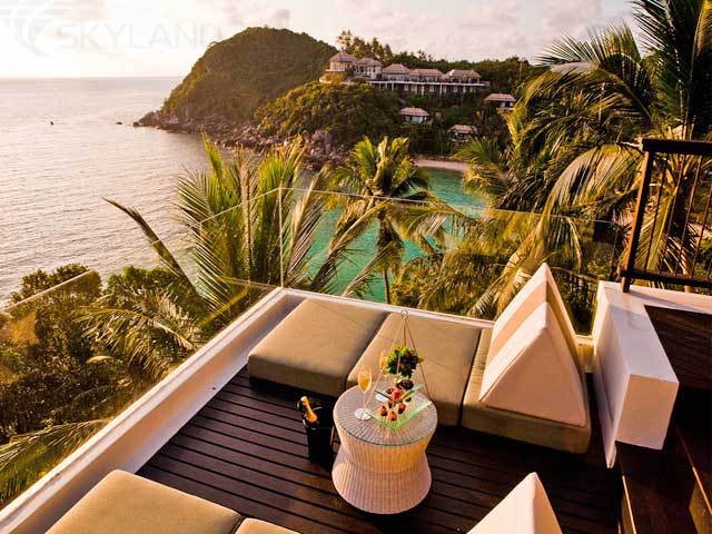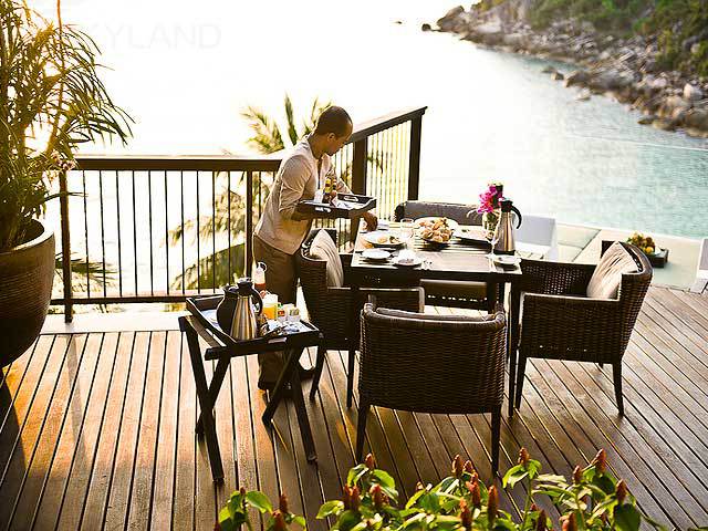 Hillcrest Pool Villas (130 кв.м) – расположенные высоко на склоне холма в ухоженном тропическом саду виллы с панорамным видом на тропические сады и Сиамский залив, состоящие из просторной гостиной, спальни с кроватью king-size, ванной комнаты открытого плана с большой ванной, душевой кабиной и гардеробной, открытой террасы с зоной отдыха и столиком для двоих, персональным бассейном и солярием с лежаками. Максимальное размещение – 2 взрослых.