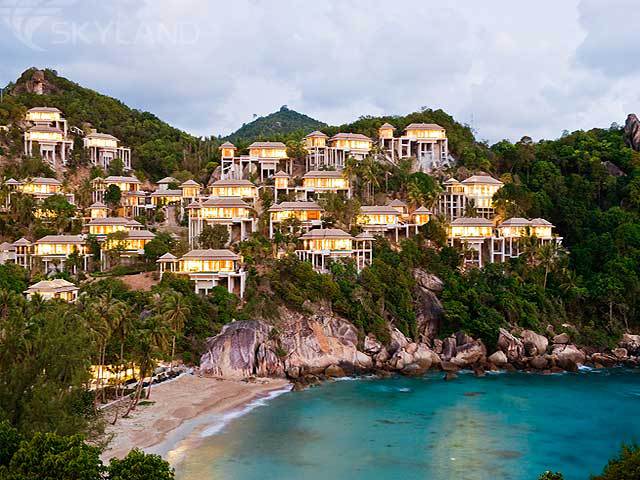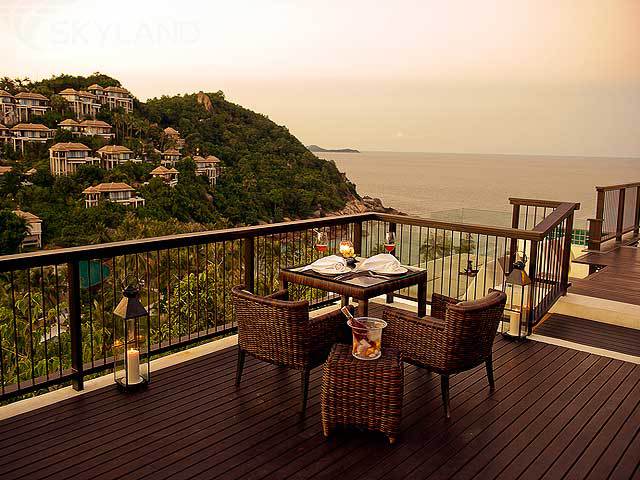 Отель предлагает гостям 78 стильно декорированных частных вилл открытого плана с бассейном, открытыми террасами и восхитительным видом на живописные холмы, лазурные воды Сиамского залива и благоухающие сады отеля.