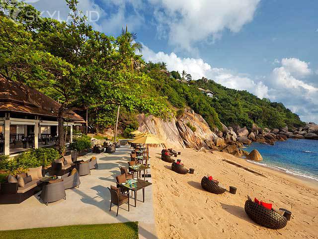 Комплекс этого фешенебельного отеля разместился на склонах живописного, покрытого пышными тропическими садами холма, на берегу залива Ламай, в уединенной частной бухте. Его элегантные, наполненные воздухом и светом комфортабельные виллы гарантируют приверженцам эксклюзивного островного отдыха полную релаксацию, уединение и приватность. Три ресторана отеля предлагают гостям роскошные меню с изысканными блюдами тайской, азиатской и интернациональной кухни, в барах можно насладиться разнообразием вин, коктейлей и прохладительных напитков. А удостоенный многих престижных наград Banyan Tree Spa Samui с комплексом гидротерапии не оставит равнодушными любителей спа-удовольствий. Также к услугам гостей отеля: бассейны для взрослых и детей, детский клуб, фитнес-центр, галерея-бутик, игровой зал, залы для проведения конференций и банкетов, бизнес-центр и прекрасный персональный сервис высочайшего уровня. Новобрачным и молодоженам отель предлагает изысканные свадебные пакеты, специальные программы и предложения.
