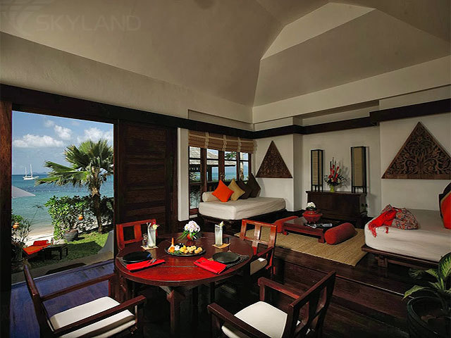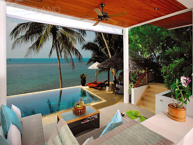 Beachfront Villa Suites (92 кв.м) - расположенные на пляже виллы с видом на Сиамский залив, состоящие из спальни, ванной комнаты, просторной гостиной, балкона/террасы с гостиной зоной, частного сада и павильона sala для персонального массажа.