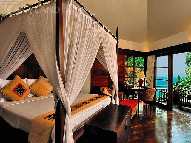 В отеле 69 комфортабельных вилл и резиденций с 1, 2 , 3, и 4 спальнями, отделанных тиком, бамбуком, дорогими шелками и тканями из хлопка, обставленных изящной мебелью и украшенных произведениями традиционного тайского искусства. С уютных террас и балконов номеров открывается великолепный вид на Сиамский залив и соседние острова.
