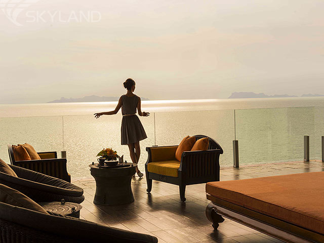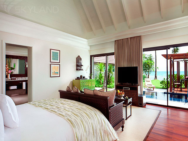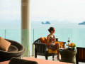 One Bedroom Panoramic Ocean View Suites (147 кв.м) – расположенные в главном здании или на верхних этажах окруженных тропическим садом 2-этажных вилл номера с роскошным видом на Сиамский залив, состоящие из спальни с кроватью king-size, рабочей зоной и гардеробной комнатой; просторной гостиной со столовой зоной на 4 персоны и мини-кухней; гостевой туалетной комнаты; ванной комнаты открытого плана с 2 раковинами, отдельным туалетом, душевой кабиной, туалетным столиком и глубокой дизайнерской ванной с видом на Сиамский залив и знаменитые 5 островов через стеклянную стену; просторной террасы с софой для дневного отдыха и столовой зоной на 4 персоны.