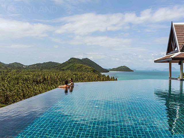 7 открытых бассейнов: расположенный рядом с Air Bar главный «бескрайний» бассейн с 360° видом на остров, рощи кокосовых пальм и Сиамский залив; расположенный на пляже «бескрайний» бассейн с расположенным рядом детским бассейном; 5 расположенных на территории отеля тематических бассейнов, названных по цвету неба и небесных светил в разное время дня и ночи, Фиолетовый – Napa (предрассветное небо), Желтый – Tawan (цвет Солнца), Orange – Chantra (цвет Луны); Голубой – Dara (цвет звезд); Красный – Sonthaya (цвет Солнца во время заката);