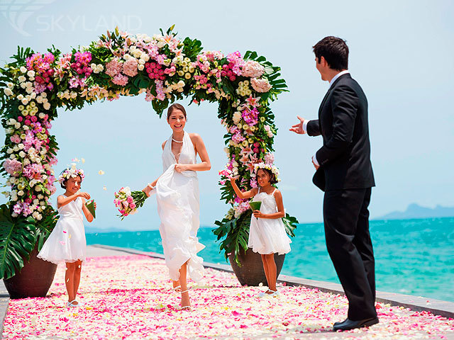 организация и проведение свадебных церемоний и торжеств с участием до 200 гостей (в конференц-зале, на пляже, на лужайке на берегу залива, на пирсе, в одном из ресторанов отеля) в европейских и тайских традициях;