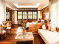 Pool Villas (110 кв.м) – расположенные у реки виллы, состоящие из спальни с кроватью king-size, просторной гостиной, ванной комнаты с ванной и душевой кабиной, просторной террасы с солярием, зоной отдыха с софой, бассейном с джакузи и ухоженным садом.