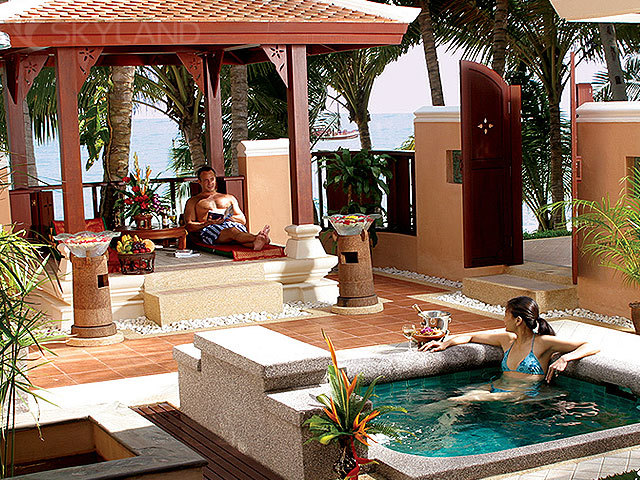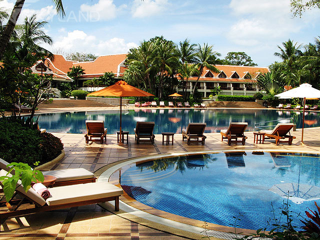 Входящий в престижную ассоциацию The Leading Hotels of the World уникальный отель, комплекс которого был создан по образу и подобию расположенного в провинции Петчбури дворца, бывшего некогда резиденцией короля Рамы IV, раскинулся на обширной территории в 23 гектара у омываемого кристально-чистыми водами Сиамского залива белоснежного 300-метрового частного пляжа. Изящные здания и объекты богатой инфраструктуры Santiburi Beach Resort Golf & Spa окружены пальмовыми рощами, изумрудными лужайками и ухоженными тропическими садами. Гостей отеля ждут роскошные сьюты и виллы, великолепная кухня и первоклассные напитки в ресторанах и барах отеля, эксклюзивные услуги спа-центра Santiburi Spa, детский клуб, обширные возможности для развлечений и занятий спортом, включая теннисные корты, спортивные площадки, футбольное поле, поле для мини-гольфа, центр водных видов спорта, дайвинг-центр PADI, частная яхта Tangaroa, персональный сервис высочайшего уровня и традиционное тайское гостеприимство.