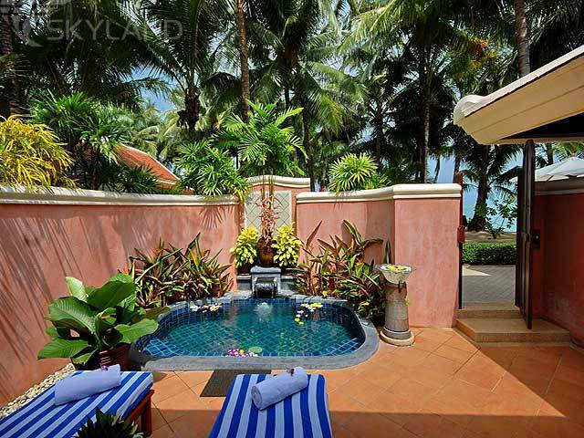 Beach Front Villas (60 кв.м) - расположенные на берегу залива виллы, состоящие из спальни с кроватью king-size, гостиной зоны, ванной комнаты с круглой ванной, душевой кабиной и 2 раковинами, открытой террасы с видом на воды Сиамского залива.