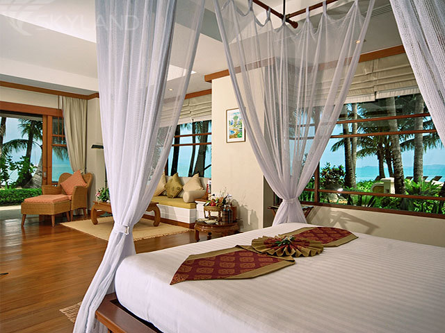 Presidential Retreat Villa (146 кв.м) – расположена у пляжа, включает 2 павильона со спальнями с кроватями king-size, ванными комнатами (ванна, душевая кабина и 2 раковины) и просторными гостиными, а также общий павильон–гостиную с видом на Сиамский залив, внутренний дворик с открытой джакузи, общую террасу и большой ухоженный сад с выходом на расположенный всего в15 метрах песчаного пляжа.