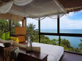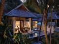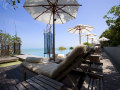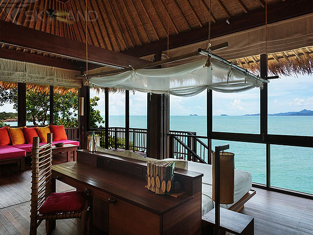 Ocean Front Pool Villa Suites (общая площадь - 300 кв.м, внутренняя площадь - 80 кв.м) - расположенные на первой линии, ближе всего к берегу, двухэтажные виллы с прекрасным видом на Сиамский залив. На первом этаже вилл расположены гостиная зона открытого плана, меблированная терраса с солярием, обеденной зоной на 4 персоны и павильоном sala с большой софой для дневного отдыха, а также персональный «бескрайний» бассейн (3 х 5 м). На втором этаже расположены спальня с кроватью king-size, выделенная гостиная с 2 диванами и гостевой ванной комнатой с туалетом и душем (может быть использована как вторая спальня), гардеробная комната с софой для отдыха, а также ванная комната открытого плана с глубокой ванной и душем на открытом воздухе. Максимальное размещение – 3 взрослых и 1 ребенок, или 2 взрослых и 2 ребенка.