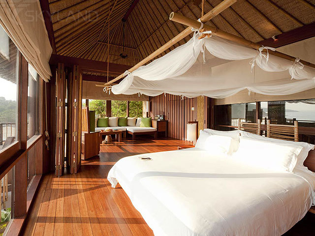 Всего в отеле 66 просторных стильных 2-этажных вилл, 52 из них с персональным бассейном. В просторных номерах – стильные индивидуальные интерьеры, с отделкой из тикового дерева, удобной мебелью и большими кроватями под пологом из тончайшей ткани, оригинальными украшениями в тайском стиле, террасами с чудесным видом на сверкающую гладь залива и окружающие ландшафты.