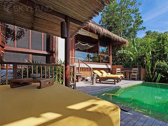 Pool Villas (общая площадь - 160 кв.м, внутренняя площадь - 55 кв.м) - разместившиеся на склоне холма, в самой высокой точке отеля виллы с частичным видом на Сиамский залив. На первом этаже вилл расположены гостиная зона открытого плана, меблированная терраса с солярием, обеденной зоной и павильоном sala (на некоторых виллах), а также персональный «бескрайний» бассейн (2,5 х 5 м). На втором этаже расположены спальня с кроватью king-size или 2 кроватями twin и гостиной зоной с большой софой для дневного отдыха, а также ванная комната открытого плана с глубокой ванной, софой для отдыха и душем на открытом воздухе. Максимальное размещение – 3 взрослых, или 2 взрослых и 1 ребенок.