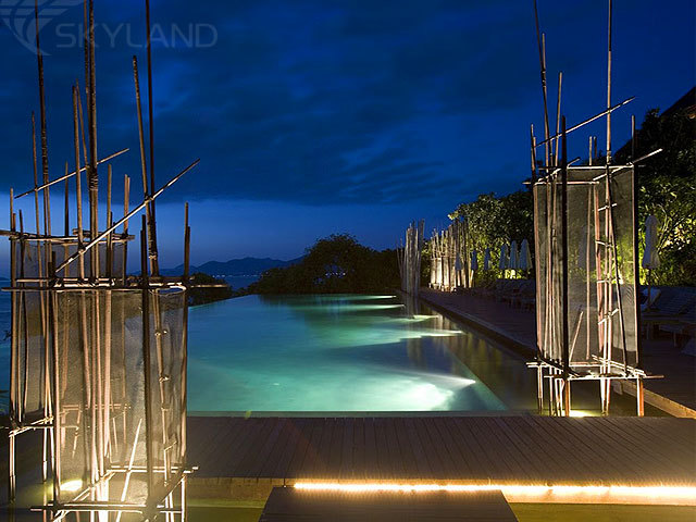 В архитектуре, дизайне и общей концепции отеля гармонично сочетаются самобытные традиции древнего Таиланда, завораживающая красота острова Самуи, атмосфера покоя и уединения, высококлассный сервис и современный комфорт. Помимо 2 прекрасных ресторанов и баров, на территории отеля имеются: обширный «бескрайний» бассейн, винный погреб, роскошный Six Senses Spa, тренажерный зал и частный оборудованный песчаный пляж, где расположен центр водных видов спорта. Отель предлагает услуги по проведению свадебных церемоний и торжеств в тайских, азиатских и европейских традициях, а также специальные предложения и программы для молодоженов.