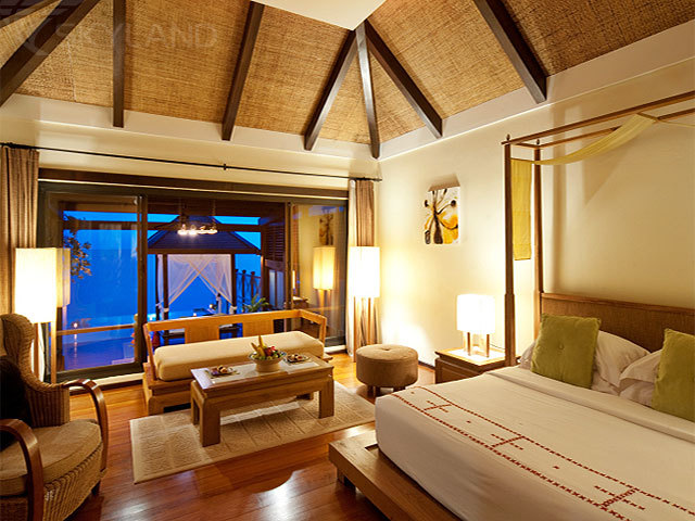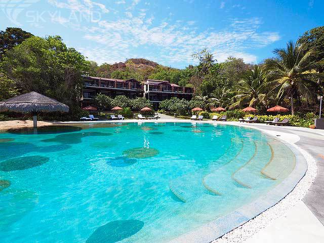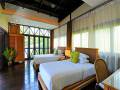 29 Cottage Suites (68-78 кв.м) – расположенные в разбросанных по поросшему кокосовыми пальмами и тропическим садом склону холма коттеджах номера, состоящие из спальни с расположенной на подиуме большой кроватью под пологом, выделенной гостиной зоны, ванной комнаты с душевой кабиной и просторной террасы с глубокой ванной на подиуме, 2 лежаками, столиком на 2 персоны и видом на Сиамский залив (в некоторых номерах – частичный). Максимальное размещение – 3 взрослых или 2 взрослых и 1 ребенок.