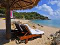 Собственный оборудованный песчаный пляж протяженностью200 метровс хорошим входом в воду. На пляже предлагаются возможности для занятий водными видами спорта (сноркелинг, виндсерфинг, каяки, лодки).