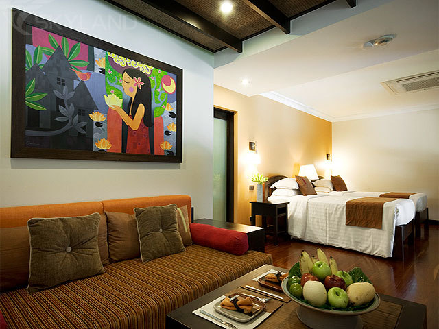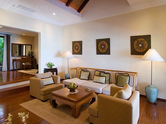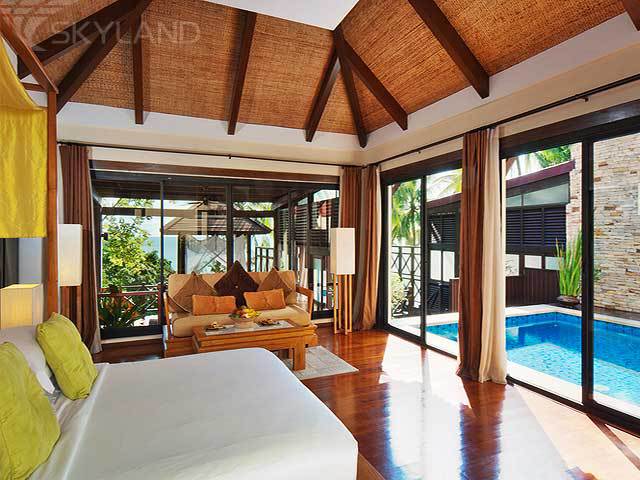 24 Beachfront Suites (72 или 86 кв.м) - расположенные в 3-этажном главном корпусе, в непосредственной близости от главного бассейна и пляжа номера, состоящие из спальни с гостиной зоной, ванной комнаты и террасы с лежаками, столиком на 2 персоны и фронтальным видом на бассейн, пляж и Сиамский залив. В 8 номерах на первом этаже (86 кв.м), имеющих выход к главному бассейну, ванна расположена в ванной комнате. В разместившихся на 2 и 3 этажах 16 номерах (72 кв.м) ванна располагается на просторной террасе. Максимальное размещение – 3 взрослых или 2 взрослых и 2 ребенка.