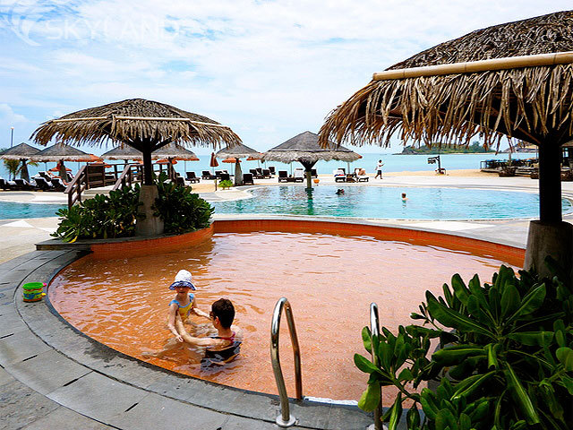 2 открытых бассейна: главный бассейн (пресноводный) свободной формы с детской секцией и джакузи; расположенный на пологом склоне холма в уединенной части отеля бассейн в виде полумесяца, (для взрослых и детей после 14 лет);