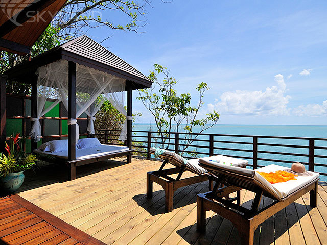 5 Tongsai Grand Villas (165 кв.м) – расположенные высоко на склоне холма к югу от берега залива виллы состоят из спальни с гостиной зоной, ванной с душевой кабиной и туалетом и выходом в мини-садик, огромной террасы с 2 лежаками, большой ванной, столовой зоной на 4 персоны, павильоном sala для отдыха с кроватью под пологом из москитной сетки и барной стойкой. Максимальное размещение – 3 взрослых или 2 взрослых и 2 ребенка.