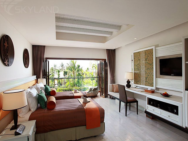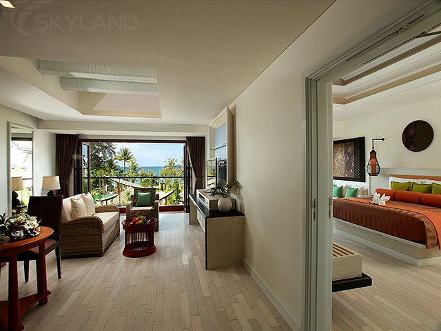 Deluxe Suites (81 кв.м) – роскошные номера с 2 спальнями с ванными комнатами (ванна и душевая кабина), просторной гостиной с телевизором (ЖК экран с диагональю 102 см) и DVD-проигрывателем, мини-кухней с холодильником, а также частным балконом с живописным видом на Андаманское море.