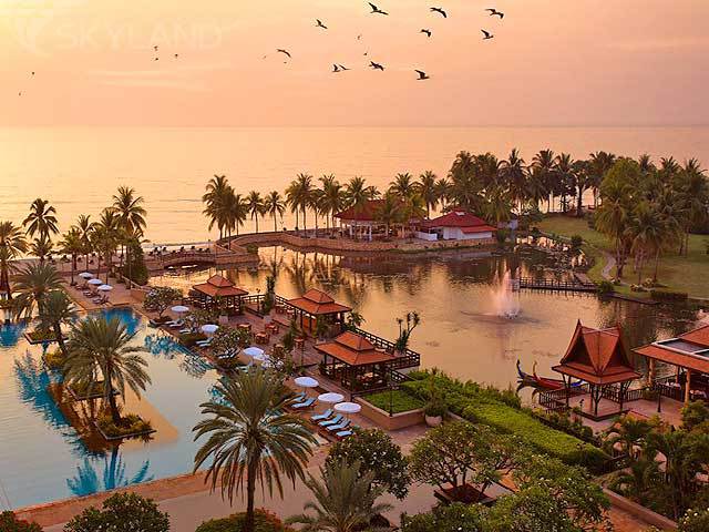 Разместившийся обособленно на широкой полосе прекрасного белоснежного пляжа, между древними городами Ча-Ам и Хуа Хин, в окружении ухоженного тропического сада с раскидистыми пальмами, живописным озером, прудами, поросшими лотосами, и 2 прекрасными бассейнами отель, входящий в престижную ассоциацию The Leading Hotels of the World. Особенностями своего расположения он напоминает лучшие отели Карибского бассейна ...