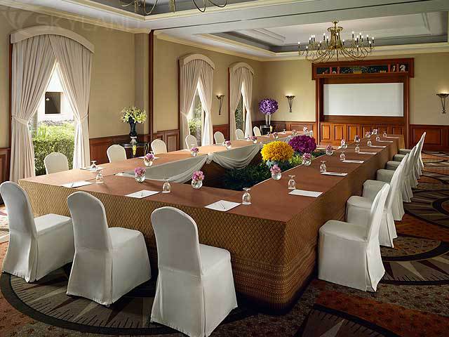7 залов для заседаний, банкетов и других мероприятий: Royal Dusit Grand Ballroom (844 кв.м, макс. вместимость 1100 чел.), который может быть разделен на два зала площадью 534 кв.м и 310 кв.м (макс. вместимость 700 и 300 чел. соответственно), залы Khao Luang I & II (общая площадь 160 кв.м, макс. вместимость 150 чел.), который может быть разделен на 2 зала площадью 86 кв.м и 74 кв.м (макс. вместимость 80 и 70 чел. соответственно), залы Khao Wang I, II & III (общая площадь 216 кв.м, макс. вместимость 200 чел.), который может быть разделен на 3 зала площадью 72 кв.м (макс. вместимость 70 чел.), зал Khao Yai Boardroom (160 кв.м, вместимость – 26 человек), Napalai Ballroom (594 кв.м, может быть разделен на два зала), залы Huay Sai I, II & III (общая площадь 176 кв.м, макс. вместимость 170 чел.) и залы Bor Fai I & II (общая площадь 128 кв.м, макс. вместимость 120 чел.);