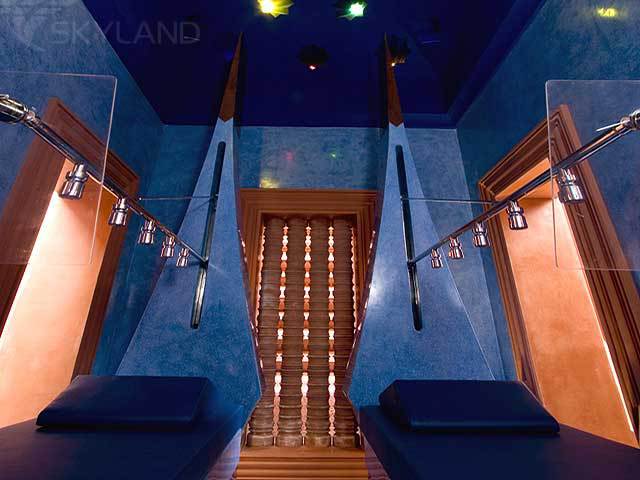 уникальный бассейн, состоящий из 3 секций: бассейн-река с водопадом и джакузи, переходящая в бассейн-лагуну с горкой протяженностью22 м. и высотой7 м. и бассейн на пляже);
