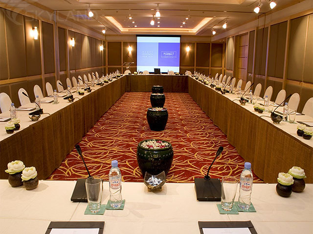 7 залов для заседаний и банкетов: Grand Ballroom (площадь 400 кв.м + отдельное фойе площадью 155 кв.м, макс. вместимость до 400 чел.), залы Regency I (площадь 69 кв.м и макс. вместимость до 60 чел.), Regency II (площадь 68 кв.м и макс. вместимость до 60 чел.), Regency III (площадь 60 кв.м и макс. вместимость до 40 чел.), Boardroom (площадь 101 кв.м, вместимость – 21 чел.) и Drawing Room (площадь 53 кв.м, макс. вместимость – 25 чел.);