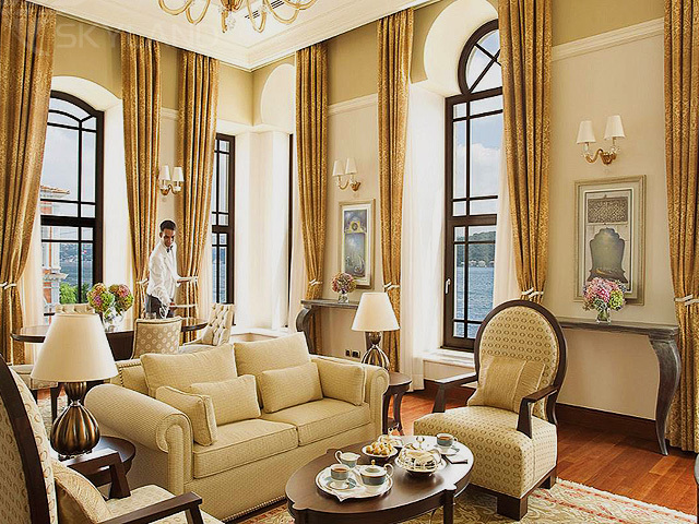 2 Two-Bedroom Bosphorus Palace Suites (170 кв.м) – роскошные номера с 2 спальнями, большими окнами с видом на пролив Босфор и ухоженные сады расположены в историческом здании дворца, на 1 и 2 этажах. В номерах: гостиная с зоной отдыха и столовой зоной на 4 персоны, 2 спальни (1 кровать king-size – в первой спальне и 2 кровати twin – во второй) с зоной отдыха и ванной комнатой с ванной и душем, гостевая туалетная комната.