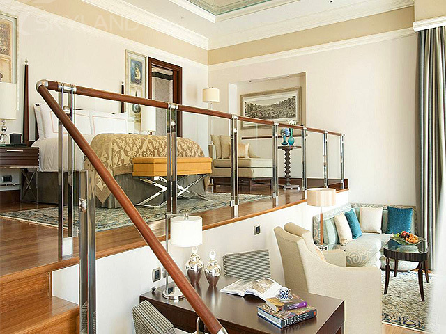 2 One-Bedroom Bosphorus Palace Suites (80 кв.м) – просторные двухкомнатные номера с большими окнами и панорамным видом на пролив Босфор расположены в историческом здании дворца, на 1 и 2 этажах. В номерах: гостиная с зоной отдыха и столовой зоной на 4 персоны, спальня с зоной отдыха, кроватью king-size и гардеробной, ванная комната с ванной и душем, гостевая туалетная комната. В номере на первом этаже спальня отделена от просторной гостиной 6 ступенями, из номера на втором этаже открывается потрясающий вид на пролив Босфор.