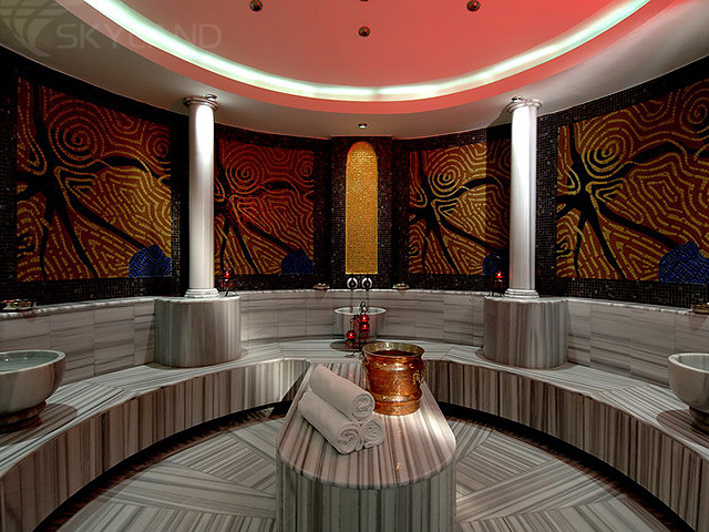 спа-центр: 2 хамама (турецкая баня), джакузи, 3 сауны, парные комнаты с ароматическими маслами;