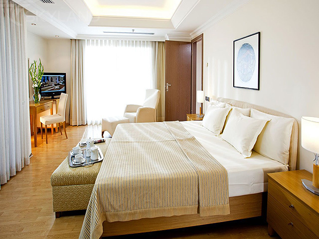 Разместившийся на живописном пляже, на самом берегу Средиземного моря в окружении величавых гор Таурус, обширного хвойного массива и курортный комплекс с пышными цветущими садами, открытыми бассейнами с потрясающими водными горками, спортивными клубами и площадками, производит незабываемое впечатление. Шагнув на территорию этого отмеченного многими престижными наградами отеля, оказываешься в далеком прошлом Юга Европы. Античные скульптуры, стройные колоннады, древние амфитеатры, обсерватории, струи фонтанов, прохладные бассейны … вот что видят гости отеля с балконов и террас его комфортабельных номеров, расположенных в главном здании и в укрытых в тенистом саду коттеджей и вилл.