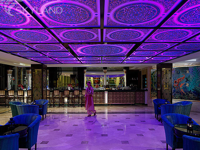 Turquoise Bar - уникальный стильный коктейль-бар в лобби, предлагающий модные коктейли и напитки, а также щедрый «шведский стол» во время послеобеденного чая.