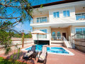 1 President Villa (180 кв.м) – роскошно декорированная и обставленная двухэтажная частная вилла с собственным бассейном, террасой и садом (260 кв.м). На первом этаже: кухня и гостиная- спальня (студио) с ТВ, DVD и домашним кинотеатром, ванные комнаты с джакузи и душевой кабиной. На втором этаже: 2 гардеробные, две спальни с дверью, 2 ванные комнаты с джакузи и душевой кабиной, меблированные балконы с видом на море. В обеих спальнях на втором этаже – телевизор и мини-бар. Дополнительно – VIP-сервис. Максимальное размещение – 6 человека.