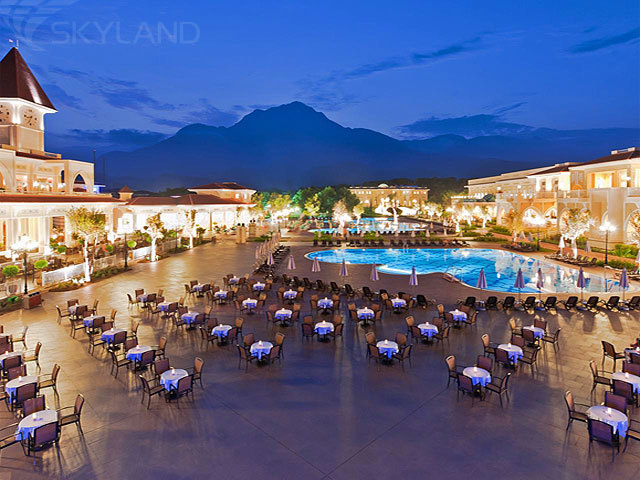 В комплекс разместившегося на площади 200 тыс. кв.м отеля, помимо 24 двух- и трехэтажных коттеджей, гигантский аквапарк площадью 22 тыс. кв.м, с 25 водными горками, детским пляжем, детским развлекательным бассейном и бассейном с водными горками, 2 открытых бассейна (для взрослых и для детей), главный ресторан и 4 ресторана a la carte и кондитерская, 10 баров, детский клуб, спа-центр, фитнес-центр, Интернет-кафе, парикмахерская и салон красоты, торговый центр, гигантский амфитеатр, где каждый вечер проходят красочные шоу, открытая и закрытая дискотека, профессионально оборудованные теннисные корты, центр водных видов спорта и многое другое.