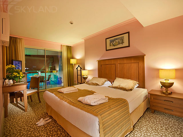 Современные белоснежные здания и бунгало этого фешенебельного отеля расположились на живописной территории площадью 95 тыс. кв.м, на просторном омываемом водами Средиземного моря пляже, в окружении пышных тропических садов и сосновых рощ. И взрослые и дети найдут здесь массу возможностей для развлечений и активного отдыха. А это - несколько бассейнов, включая бассейн с горками и детский бассейн, теннисные корты, центр водного спорта, спа- и фитнес-центр, спортивный комплекс, анимация, шоу-программы, великолепный детский клуб со своим рестораном, дискотекой, пляжем и кинотеатром, боулинг, бильярд, множество ресторанов, кафе и баров, где им будут предложены разнообразные напитки и кулинарные изыски разных стран мира, и многое другое. Отель идеально подойдет как для пляжного отдыха с семьей или друзьями, так и для романтических каникул. Кроме того, здесь есть все необходимое для проведения конференций и деловых встреч, а также для организации незабываемого праздника.